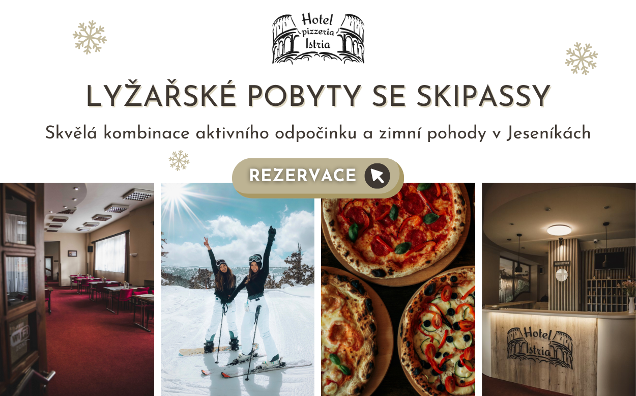 Těšte se na pohodlné ubytování, výbornou polopenzi, celodenní skipassy na okolní sjezdovky a relaxaci v Termálních lázních Velké Losiny. Spojte aktivní den na svahu s odpočinkem – ideální kombinace pro zimní dovolenou v srdci Jeseníků.